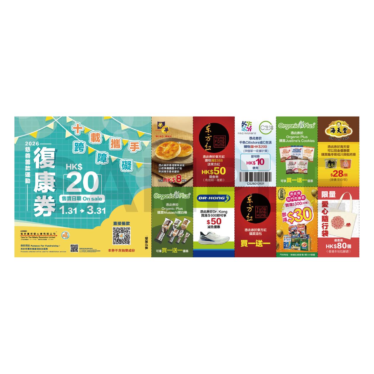 以上購買數量以5張為單位,每張復康券價值$20 -購買復康券不獲發收據。 -閣下向本會提供的個人資料,純屬自願。如閣下透過網上購買但未能提供足夠資料,本會可能無法完成寄發復康券程序。 -閣下提供予本會的個人資料只用作處理收款以及寄奉本會籌募活動消息之用,並只會供給本會及銀行在工作上有需要知道該等資料的職員使用。 -交易一旦確認,恕不接受任何形式的更改,亦不設退款。